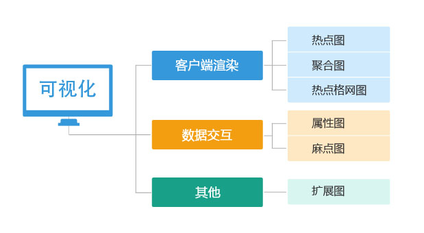 SuperMap iClient for JavaScript 提供了大量可视化效果图,可以满足用户的不同需求,总体可划分为三大类: 客户端渲染、 数据交互、 其他。